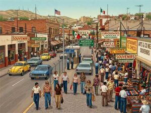 ツーソンからはフェニックスを通過して、I-40に戻れば、ルート66になるのですが、同じ道ではなく、I-8に進路を変えて、サンディエゴを目指し、そこから北上して、ロスアンジェルスに帰るルートを選択しました。メキシコとの国境近くを通ります。陸続きですから、メキシコからの移民や観光客も多く、メキシコ風の景色も増えます。今では不法移民が増えて、アメリカ政府は国境を厳しくしているそうですが、陸続きなので、実・・・